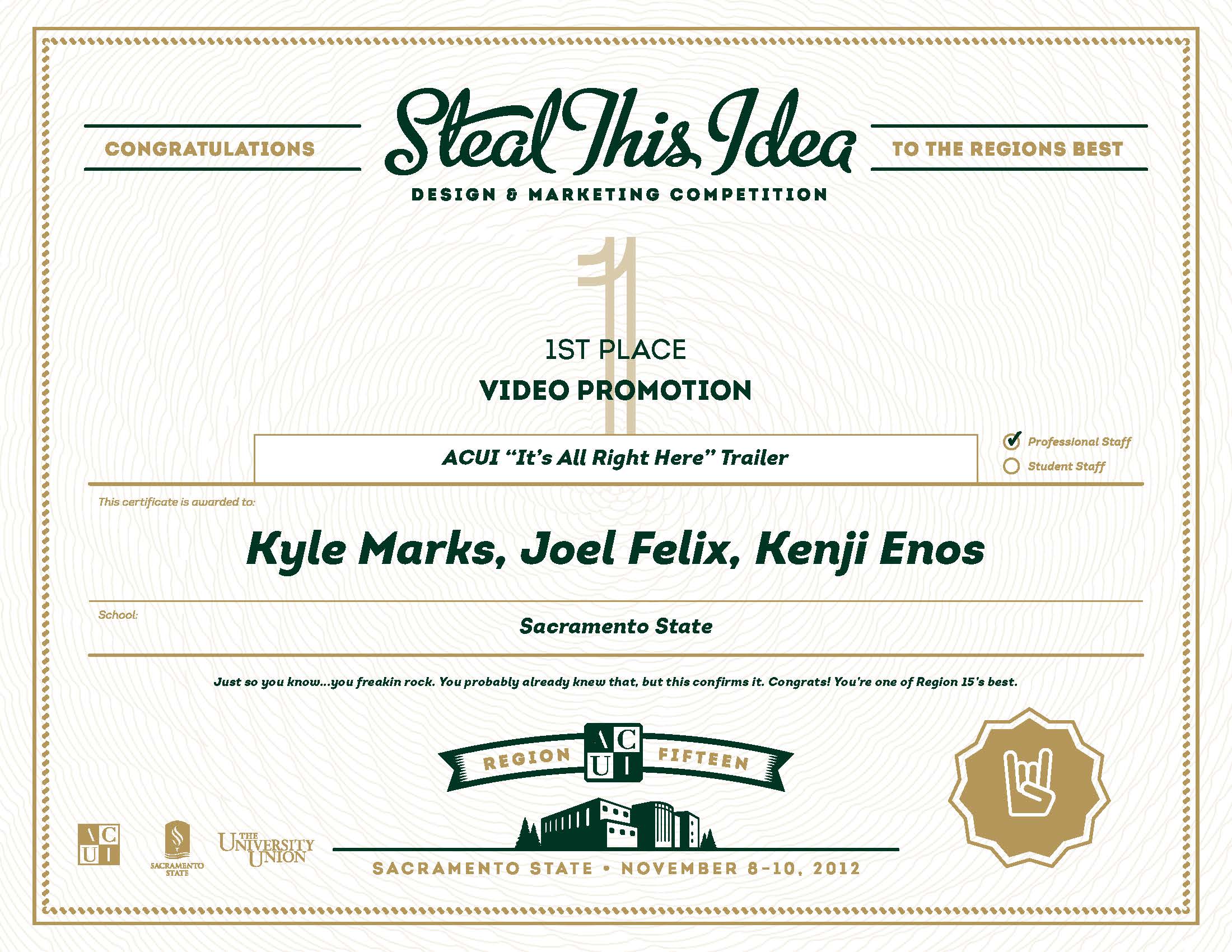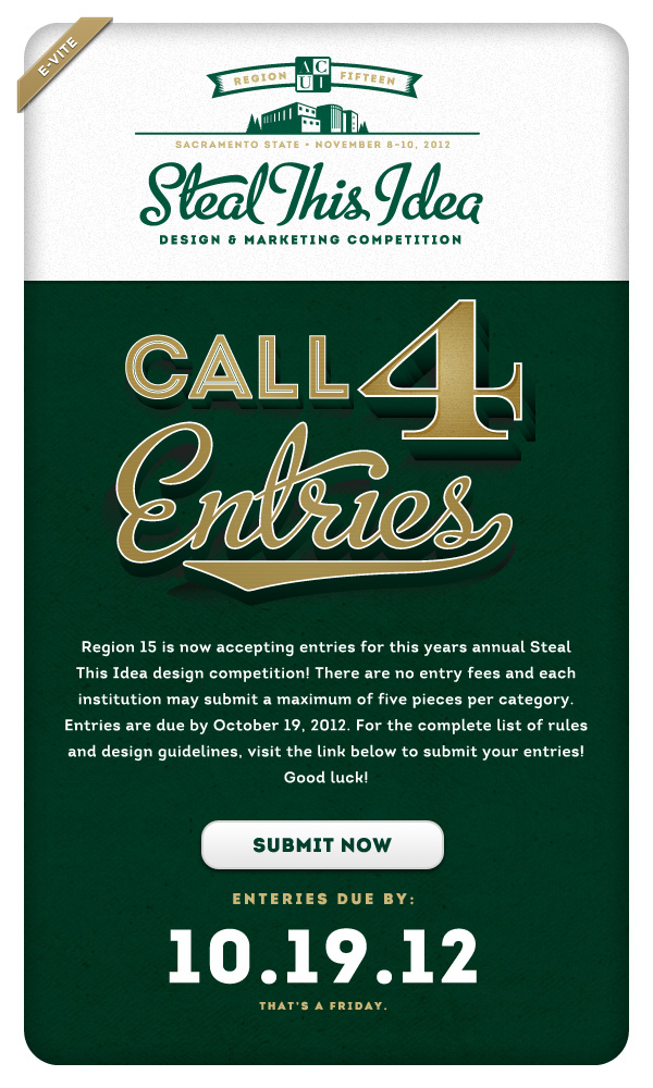 ACUI is one of the oldest associations in higher education. In November 2012, Sacramento State was selected to host Region 15’s Annual Conference. Our team was responsible for creating the conference’s entire identity, including web design, print collateral, and other campaign materials. This campaign won “Best of Show” the following year at ACUI’s annual graphic design contest.