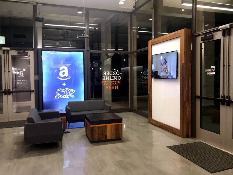 This 3,500 sq. ft. space was the first university-based Amazon pickup location to feature an interactive device experience, allowing students to explore movies, games, books, and music on Kindle, Fire tablets, and Fire TV.