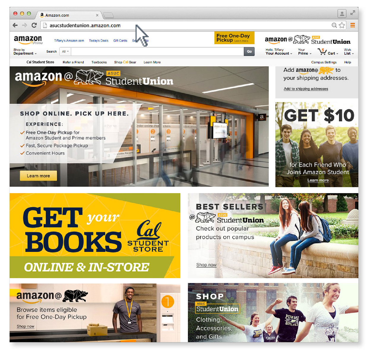 I led the design process, including contract negotiations, art direction for the Amazon @ ASUC Student Union co-brand, UX/UI, and oversight of interior decisions for the Amazon storefront in UC Berkeley’s Lower Sproul.